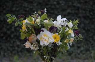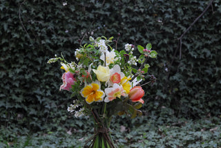 Fresh flowers are available from March/April to October/November, depending on the weather. In winter, bouquets consist of winter greens and dried flowers.